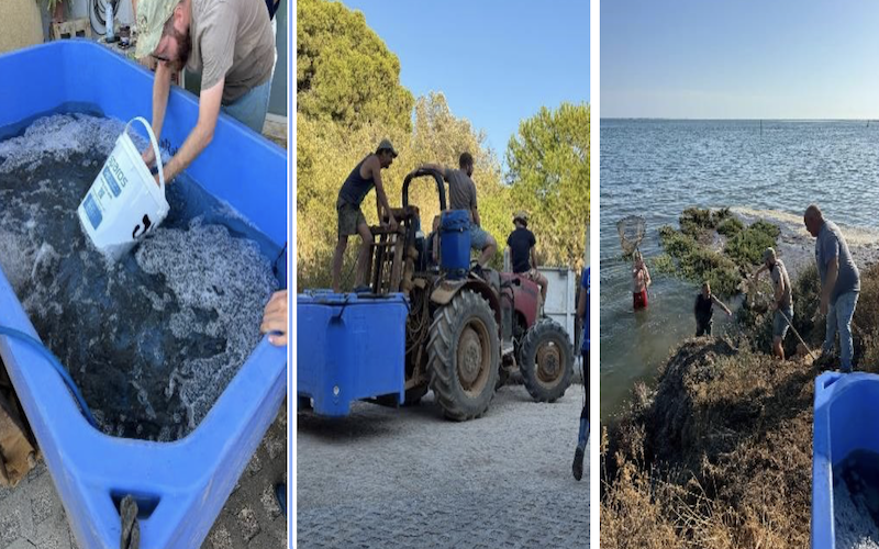 Equipa da Estação Piloto de Piscicultura de Olhão liberta corvinas e robalos na Ria Formosa